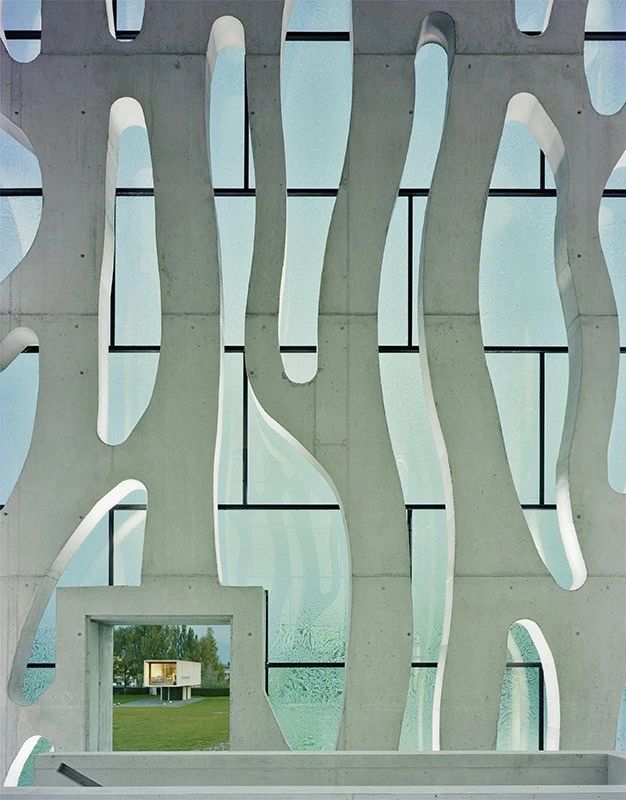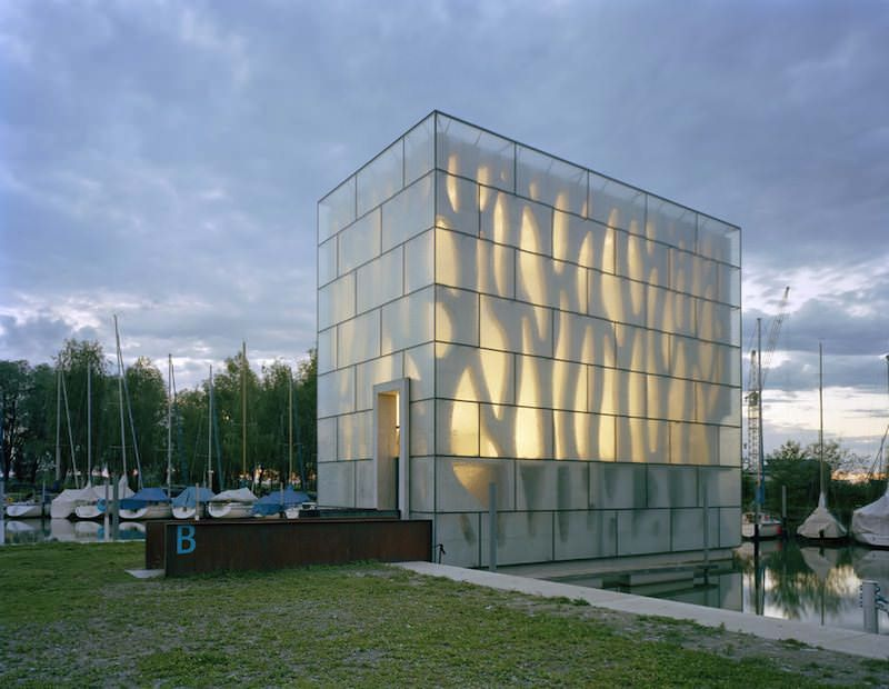 当光线进入建筑物,创造出光与影的游戏,而湖水则反射在玻璃板上。因此,静态结构被赋予了“运动”,使原本的建筑在视觉上变得更加轻盈。