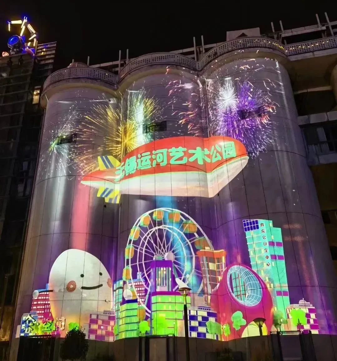 3D光影秀融入无锡漕运码头文化、米仓米市文化、饭稻羹鱼美食文化元素,用光影谱写了一段,穿越千年的元宇宙梦幻之旅……