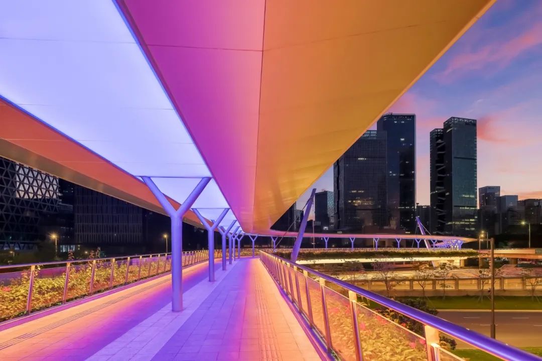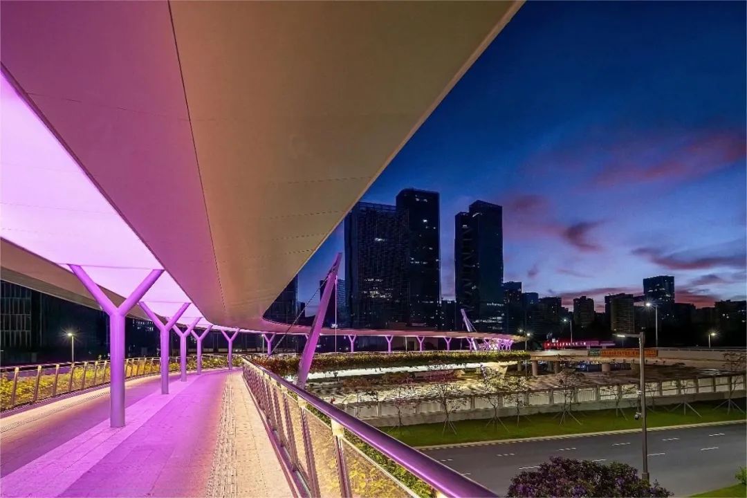 天桥是解决城市道路交通拥堵和保护行人安全的有效措施。它的出现使得人们白天出行更加安全便捷,同时桥梁灯光的建设不仅丰富了城市整体夜景观,更为人们夜间出行的安全与便捷添砖加瓦。温暖的灯光不仅照亮了市民回家的路,也照进了每个人的心里,在时光缓缓中对城市的归属感与幸福感滋养而出。