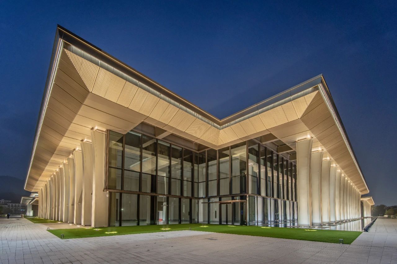 广州白云国际会议中心二期项目位于广州市白云区,地处白云山西麓,总建筑面积达13.7万平方米,由地上六层、地下一层核心区与四座裙楼组成,集高端会议、展览、宴会功能于一体,拥有国际会堂、宴会厅、会议室等34间,配备同声传译、会场隔音、EAW音响系统等国际一流标准专业系统设备,可同时容纳6000余人召开高标准会议。项目设计出自“中国馆之父”何镜堂之手,灯具采用璨华照明灯具厂家提供,取意“飞扬逐梦,云山叠景”。