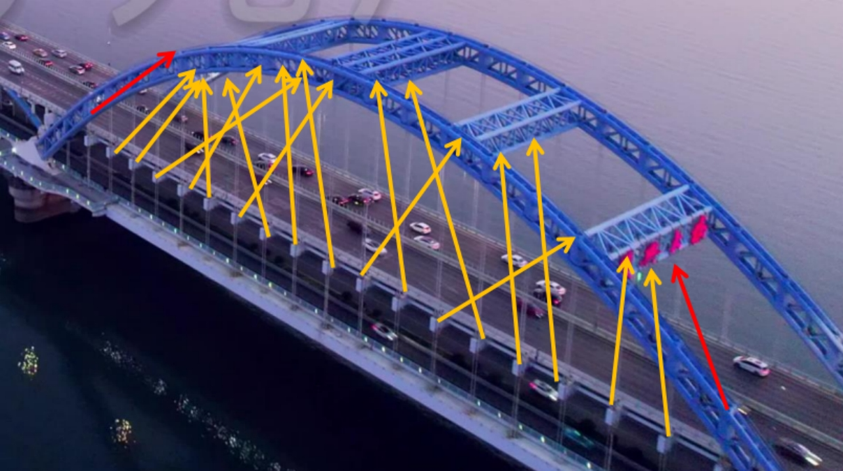此为改造提升项目。大桥在改造前仅2座大拱形为彩色,其余小拱为单色T5管。损坏率高、色彩不连续,且程序无法远程调用。且在横梁区域无配备灯具,需进一步提升结构体块感。这些都与“彩虹之桥”的美名相左。